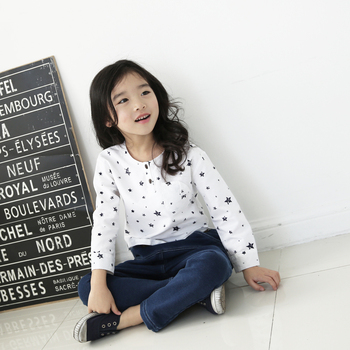 Toddler Girls White Pullover Shirt 100% Soft Cotton Star Print Long Sleeve Casual Top Wholesale Children Kids Clothing T-shirts